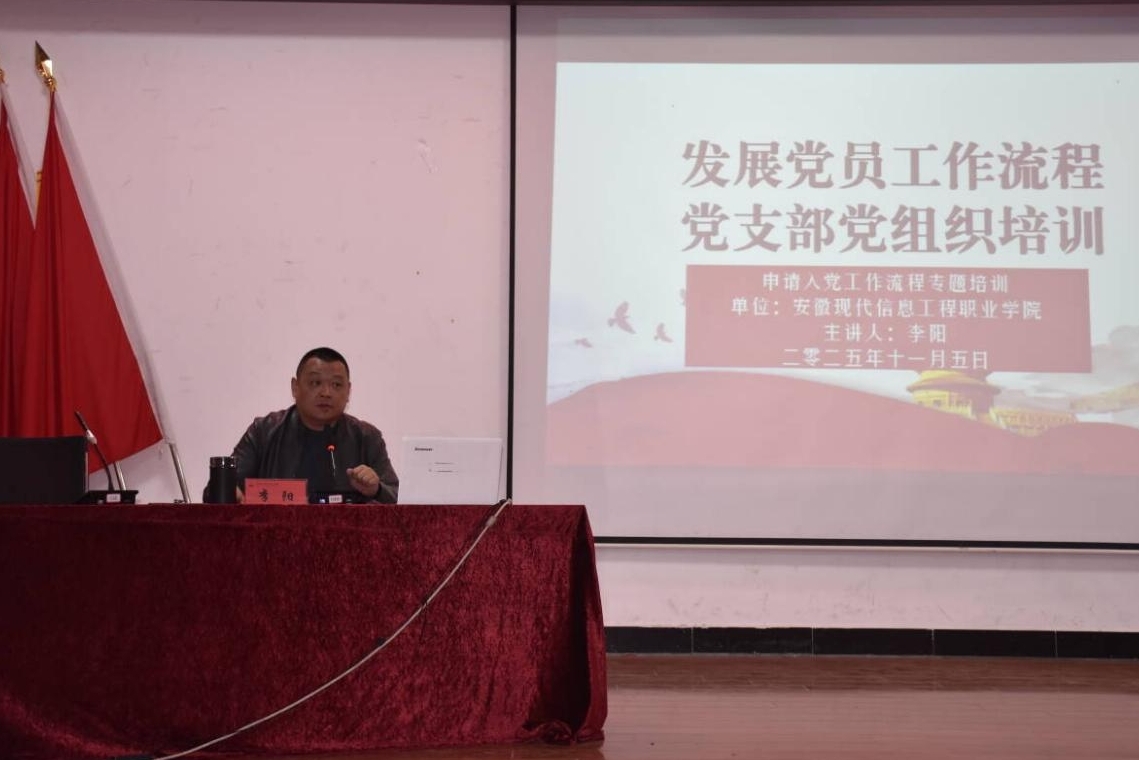 当晚19:00,学院党委委员、副院长、组宣统部部长李阳主讲《发展党员工作流程专题培训》。李院长围绕“申请入党、入党积极分子的确定和培养教育、发展对象的确定和考察、预备党员的接收、预备党员的教育考察和转正”五个阶段,详细讲解了发展党员工作的规范流程与关键环节,强调程序严谨、标准统一的重要性,为学员们明晰了入党路径与组织要求。