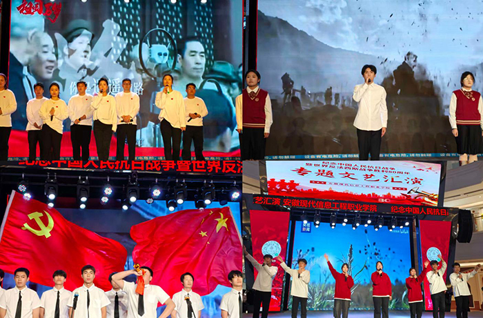 八十载山河无恙,八十年精神永存。2025年12月28日下午,beat365英国官网网站五年高职部举办纪念中国人民抗日战争暨世界反法西斯战争胜利80周年专题文艺汇演。在系主任庄雪芹、副主任李远萍及吴跃婷的统筹下,演出先后于寿县恒太城、环球港连演两场,为观众呈现了一场红色艺术盛宴。现场观众热情高涨,掌声不断,抗战精神在生动的艺术表达中跨越时空,激荡人心。