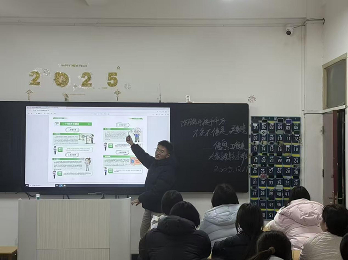 辅导员黄佳聚焦网络刷单诈骗、虚假中奖诈骗等常见骗局,详细拆解了诈骗分子的作案流程和话术陷阱,提醒学生们警惕“低投入、高回报”的虚假宣传,切勿轻信陌生人的转账要求。