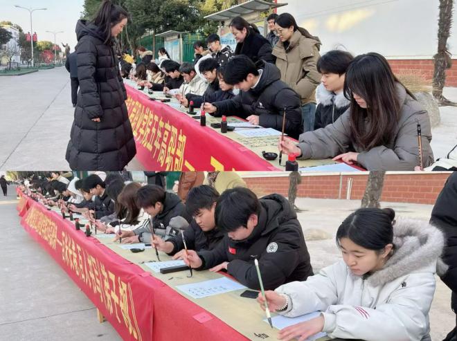 庄雪芹主任在现场致辞中提到,这场书写活动是五年高职部学子将传统文化融入德育的鲜活载体,让学生在笔墨实践中读懂经典、践行美德。曹学华董事强调,中华优秀传统文化是民族的根与魂,高职教育需在培养专业技能的同时涵养学生的文化素养与道德品格。百米笔墨长卷《弟子规》,成为师生共同创作的文化瑰宝。创作结束后与全体参与师生于学院南门合影留念,记录下传统文化融入校园的美好瞬间。