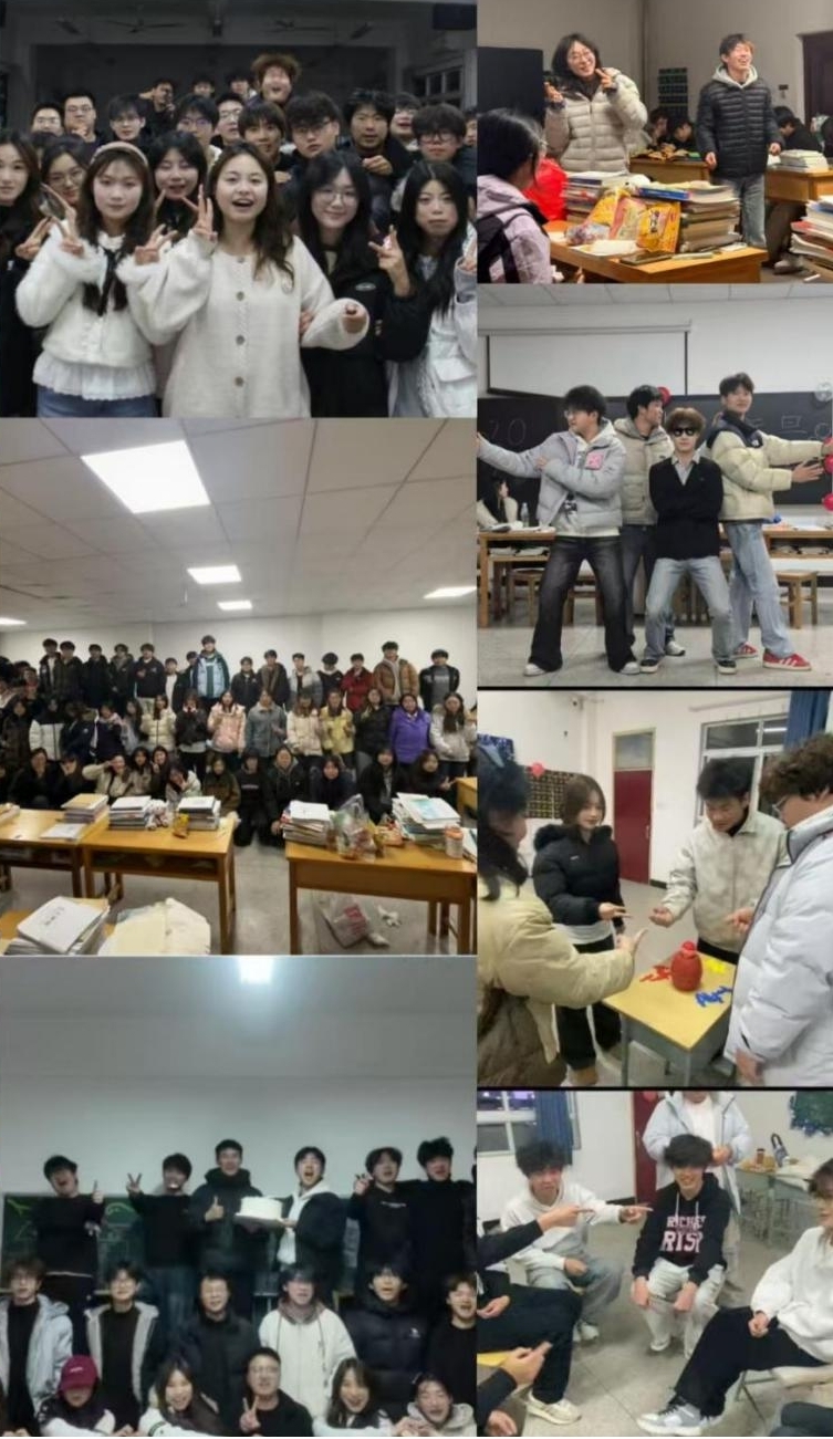 当晚,各班教室被彩灯、气球与创意黑板报装点一新,洋溢着浓厚的节日气息。晚会节目丰富多彩,掌声与欢笑不断。歌曲表演情感真挚,既有经典旋律的深情诠释,也有青春活力的现代演绎;哑剧节目巧妙构思,以夸张生动的肢体语言呈现生活趣事,吸引全场注目,彰显同学们的创造力与表现力。晚会为同学们提供了展示才华、增进交流的舞台,也丰富了校园文化生活,强化班级凝聚力与归属感。同学们在轻松愉快的氛围中释放压力、感受集体温暖,纷纷表示将以崭新的姿态投入2026年的学习生活,砥砺前行,不负时代,彰显经管学子的责任担当。