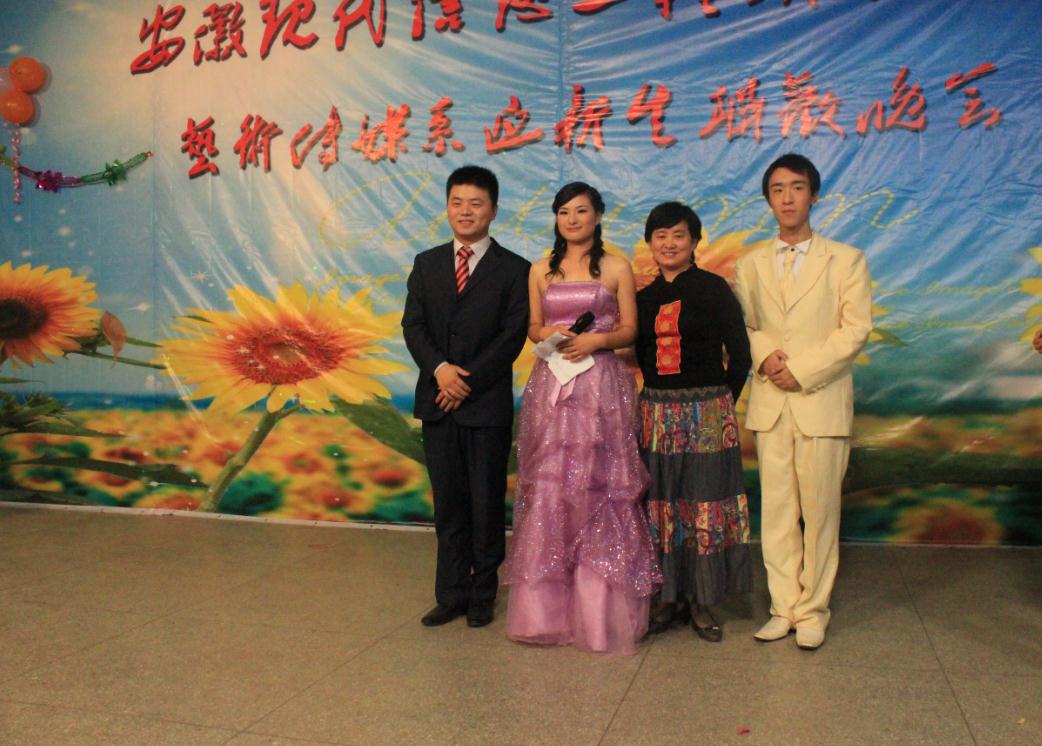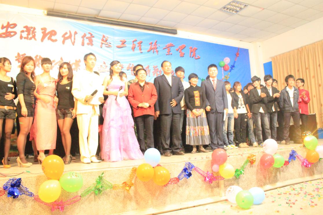 学院党委副书记、院长谈洁玉、副院长李延贵等领导登台与演员合影留念。