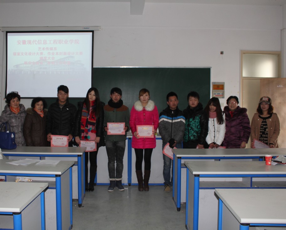 12月27日下午,beat365英国官网网站艺术传媒系寝室文化设计大赛、作业本封面设计大赛颁奖暨安全教育、寒假工作布置大会在beat365行知楼4203多媒体教室举行,会议由艺术传媒系教学秘书王坤老师主持。