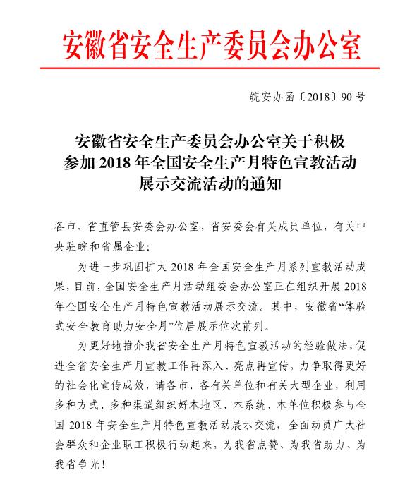 安徽省安全生产委员会办公室关于积极参加 2018 年全国安全生产月特色宣教活动展示交流活动的通知