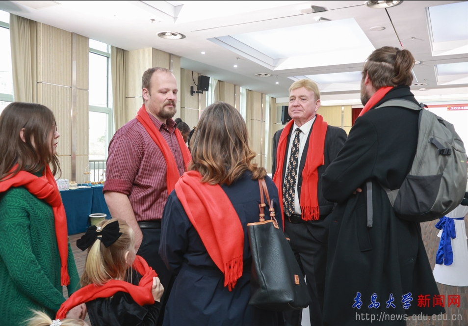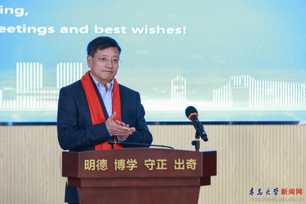 魏志强代表学校向出席联谊会的外籍教师和来宾表示热烈欢迎。他回顾了过去一年学校在拓展国际交流合作、优化国际学科生态、推动国际产学研融合、加强国际师资队伍建设等国际化办学领域所取得的成绩。他表示,学校国际化办学工作所取得的成绩和发展,离不开青岛市相关职能部门的关心与支持,凝聚了学校全体外籍教师及参与外专工作的同事们的辛勤工作与奉献付出。展望2025年,他希望,包括外籍教师在内的全体青大人继续并肩携手,以学科国际化建设为龙头,以人才队伍的国际化建设为关键,以国际化人才培养为目标,以国际化课程建设为切入点,全面推进学校国际化大格局建设。
