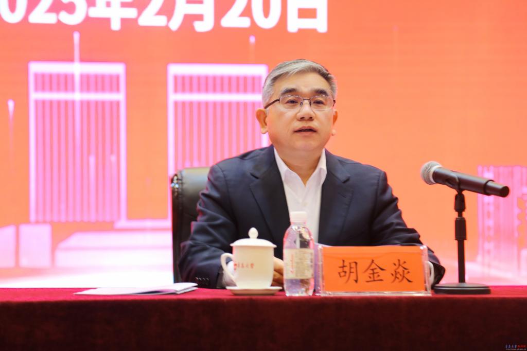 胡金焱指出,近年来,学校党委深刻把握新时代高等教育面临的新形势新任务,准确研判学校事业发展所处的历史方位,系统谋划学校事业高质量发展路径,提出了一系列办学治校的新思路新理念,出台了一系列改革发展的新举措新办法,推动学校综合实力实现了历史性突破。他指出,随着学校第四次党代会的胜利召开,学校开启了加快建设高水平综合性研究型大学的新征程。站在这样一个新起点,要以更高远的历史站位、更广阔的全局视野、更深邃的战略眼光,牢牢把握未来五年历史方位、时代坐标、战略定位、中心任务。通过列举实例和数据对比,胡金焱深刻分析了当前学校事业发展的中心任务、阶段性目标、实现路径、基础依据(比较优势)以及压力和挑战。