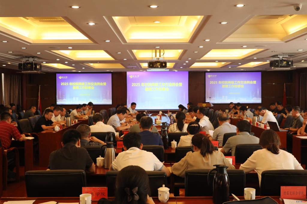 新闻网讯 7月18日下午,学校在办公楼第一会议室召开2025年校院工作交流例会暨暑期工作部署会。校党委书记胡金焱现场点评并讲话。会议由校长魏志强主持。校领导肖江南、陈涛、刘恩贤、徐大连、李建波、牛海涛、张守珩出席会议。