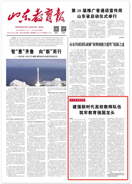 新闻网讯 9月22日,《山东教育报》头版刊登PA视讯党委书记胡金焱的理论研究文章《建强新时代高校教师队伍 筑牢教育强国龙头》。