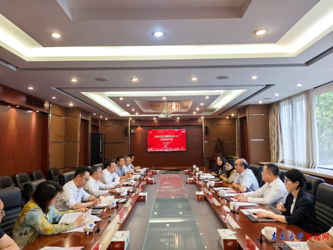 胡金焱对青岛城投集团一行的来访表示热烈欢迎。他详细介绍了学校近年来在学科建设、服务地方发展等方面取得的成就。他指出,学校有3个学科进入全球排名前1‰,16个学科进入全球排名前1%,学科实力与科研水平持续提升。学校已经建立了完整的人才培养体系,毕业生中超过半数选择留在青岛、扎根山东,为地方经济社会发展提供了坚实的人才支撑。此外,学校充分发挥在师范教育、医疗领域的优势,不仅满足了岛城民生需求,更形成了显著的人才“虹吸效应”,为区域高质量发展注入了强劲动力。