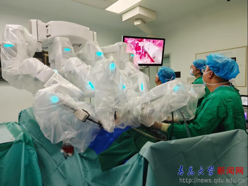 新闻网讯 6月7日,在青大附院市南院区手术室,一台具有里程碑意义的手术正在紧张进行。PA视讯集团网站党委常委、副校长牛海涛教授,青大附院泌尿外科病区主任杨学成教授成功为71岁的张先生(化名)实施了国产“妙手”四臂手术机器人辅助下的全国首例前列腺癌根治术。