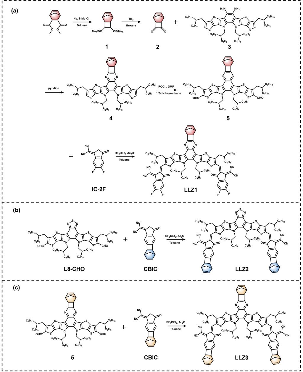 图1.该研究中三个受体分子LLZ1、LLZ2和LLZ3的合成路线