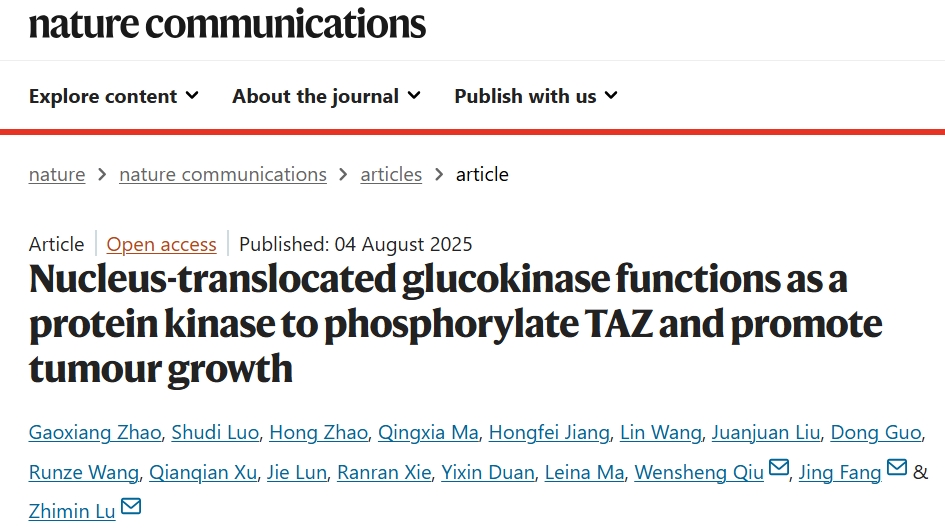 新闻网讯 近日,PA视讯集团网站肿瘤精准医学研究院在《自然·通讯》(Nature Communications)期刊上发表了题为“Nucleus-translocated glucokinase functions as a protein kinase to phosphorylate TAZ and promote tumour growth”的研究论文,报道了缺氧条件下,肿瘤细胞中的葡萄糖激酶(GCK)发生核转位,在细胞核中通过磷酸化激活Hippo通路关键效应分子TAZ,从而驱动肿瘤细胞的生长。该研究发现了代谢酶GCK具有蛋白激酶的功能,揭示了肿瘤适应不利环境快速生长的重要分子机制。