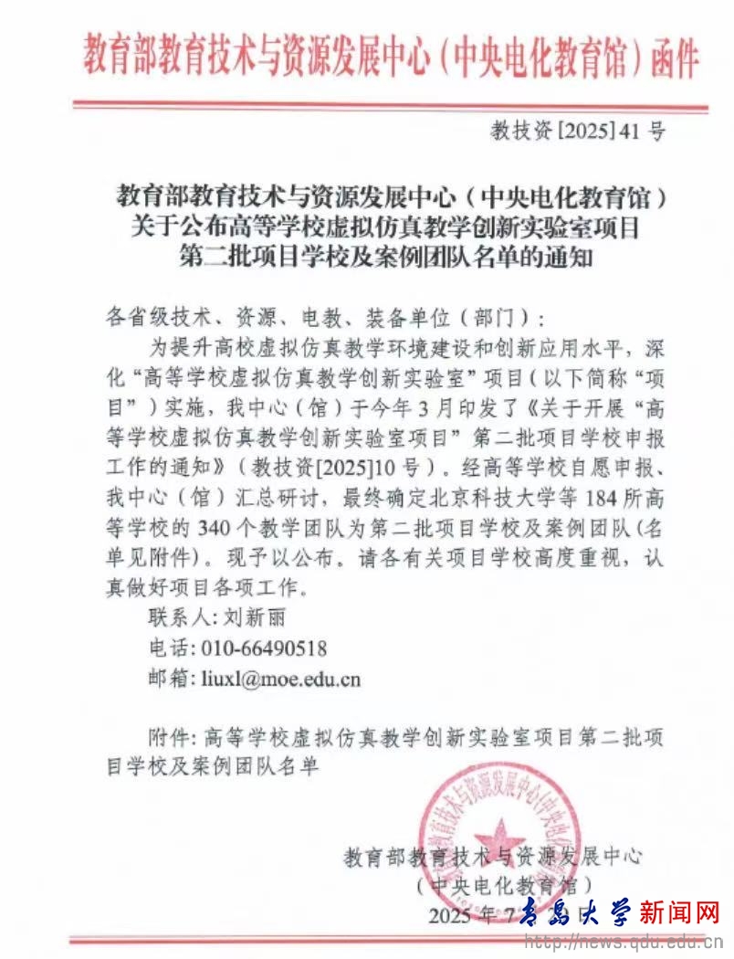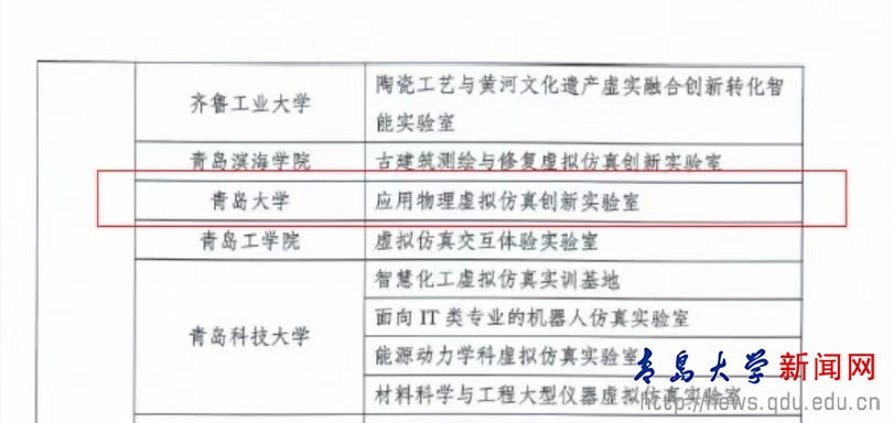 新闻网讯 在教育部最新公布的第二批高等学校虚拟仿真教学创新实验室项目名单中,PA视讯物理科学学院申报的“应用物理虚拟仿真创新实验室”项目成功入选。此次全国共有184所高校的340个项目入选,山东省高校获批57个,该项目为本批次PA视讯集团网站唯一入选项目。