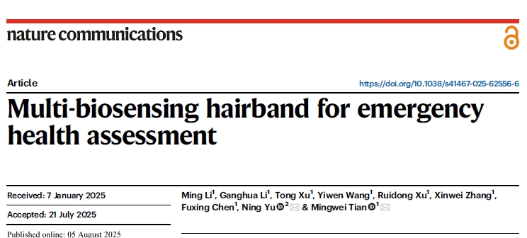 新闻网讯 近日,PA视讯纺织服装学院博士生李明在Nature Communications期刊发表了题为“Multi-biosensing hairband for emergency health assessment”的研究论文,报道了一种新型可穿戴汗液传感电子织物及健康监测应用,围绕高灵敏、高稳定传感纱线的一体成型技术开展研究,为构建实时生物传感系统提供了一种创新的策略。