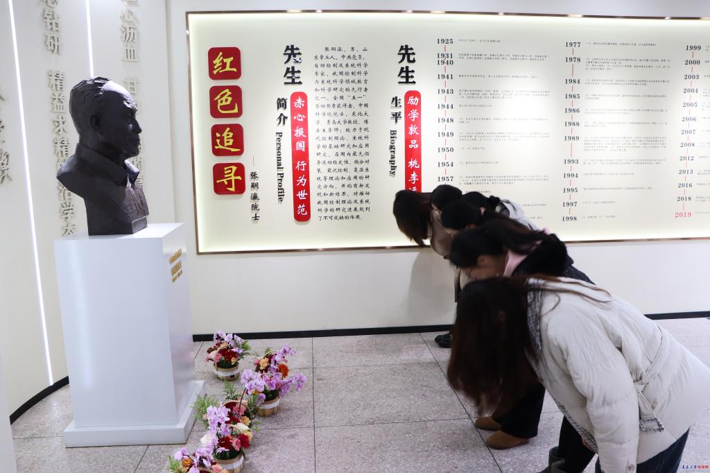 完成花艺作品后,全体女教师们前往学院一楼张嗣瀛院士纪念馆进行献花仪式,表达对院士的崇高敬意和缅怀之情。