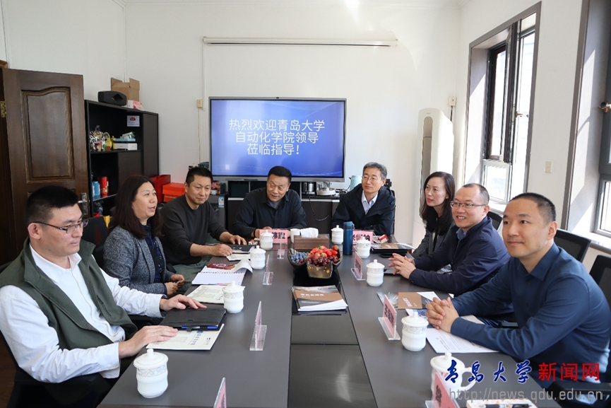 新闻网讯 4月25日上午,自动化学院与青岛金派克包装机械有限公司在青岛金派克包装机械有限公司会议室,围绕产学研合作展和毕业生就业开展座谈研讨。自动化学院党委书记张新柏、党委副书记于宏及学院教师代表,青岛金派克包装机械有限公司董事长金伟健、青岛紫文管理咨询有限公司董事长杨德才及两公司相关工作人员参会。座谈会由杨德才主持。