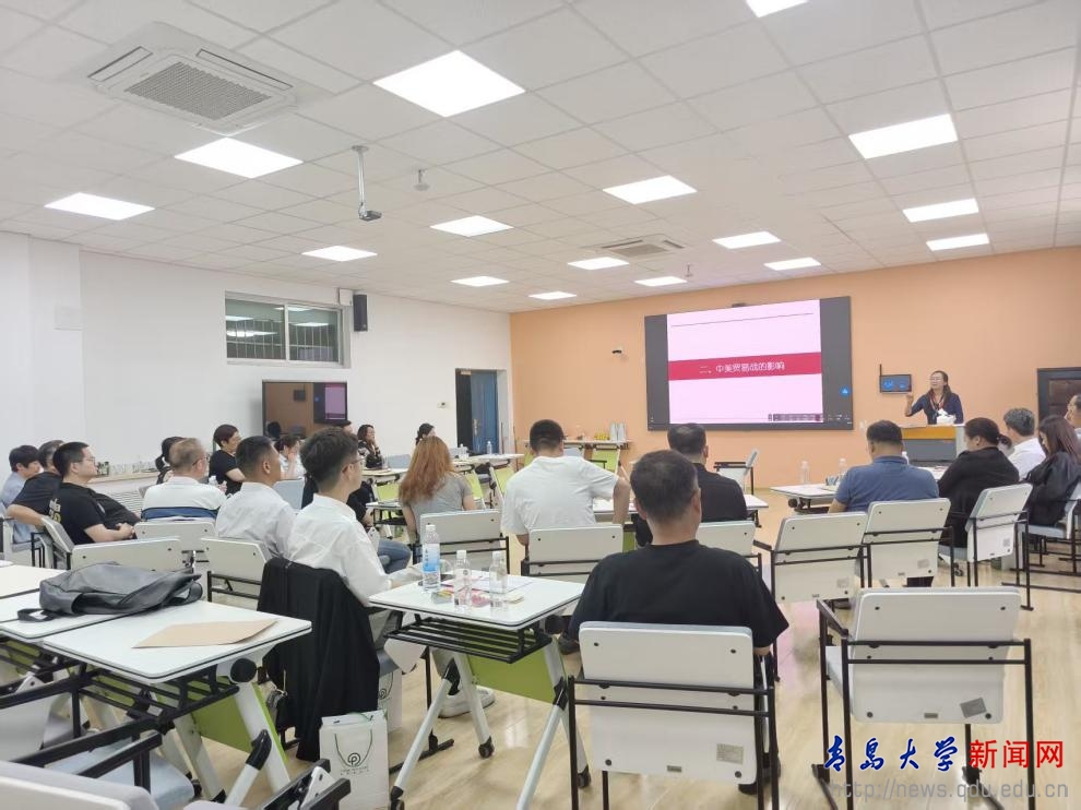 活动核心环节精彩纷呈。第一阶段由学院社会服务与培训中心副主任张中恳老师负责引导,与会学员通过精心设计的沙盘推演环节,将理论与模拟实战相结合,积极互动,思维碰撞,现场气氛十分热烈。第二阶段由陈晓文教授深入剖析了当代中美贸易博弈中蕴含的战略思维与决策逻辑、贸易战2.0背景下的外贸企业机遇与挑战,为听众提供了跨越时空的深刻洞见。