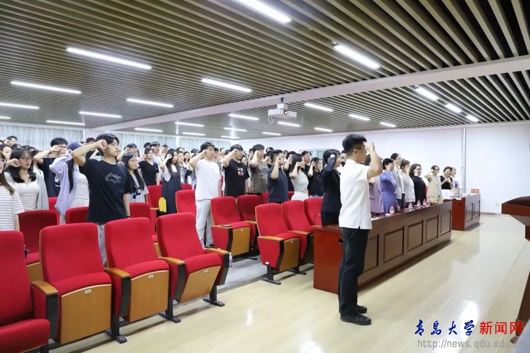 新闻网讯 近日,商学院在金家岭校区图文中心3楼报告厅举办“青衿致远守初心 扬帆逐梦启新程”毕业生党员联合主题党日活动。院党委副书记尼梅颉、各系党支部书记、毕业生党员(预备党员)、入党积极分子等百余人参加活动。