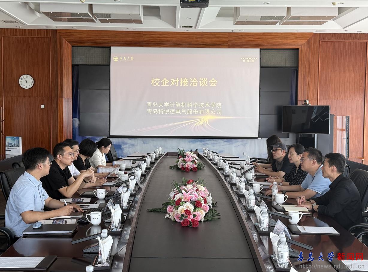新闻网讯 6月18日上午,计算机科学技术学院党委书记潘秋鸿,副院长王国栋、杜祥军等一行6人赴青岛特锐德电气股份有限公司开展校企合作对接洽谈。青岛特锐德电气股份有限公司副总裁兼总工程师李广智等热情接待学院一行。双方围绕科研创新、人才培养、成果转化等领域展开深度交流,达成多项合作共识。