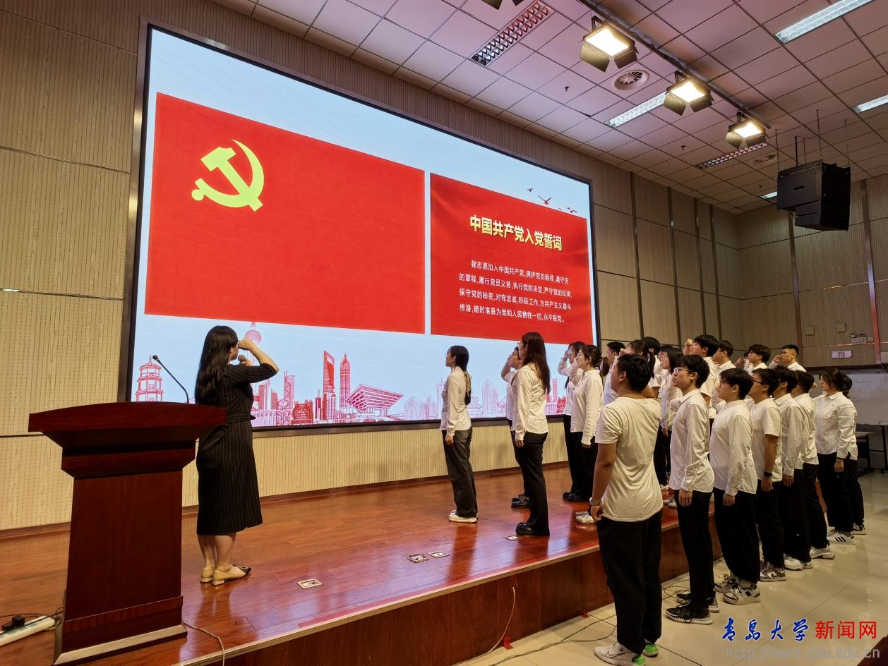 辅导员田晓英带领新发展党员代表宣誓,现场老党员一同重温入党誓词,引导全体党员赓续红色血脉、坚定理想信念、锤炼坚强党性。