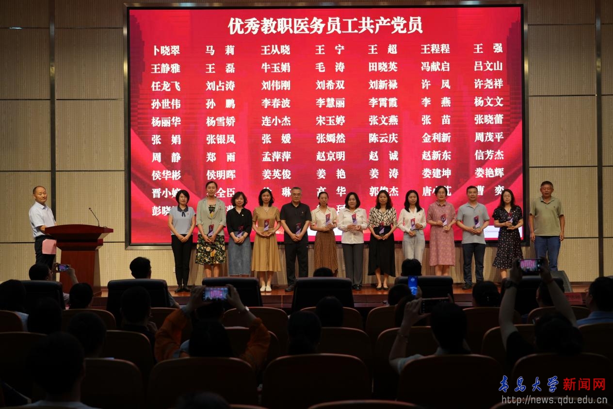 青岛医学院副院长王建勋宣读《关于表彰先进基层党组织、优秀共产党员、优秀党务工作者的决定》,基础医学院教工第二支部等13个基层党组织被授予“先进基层党组织”称号,卜晓翠等84名同志被授予“优秀共产党员”称号,张丽等10名同志被授予“优秀党务工作者”称号。