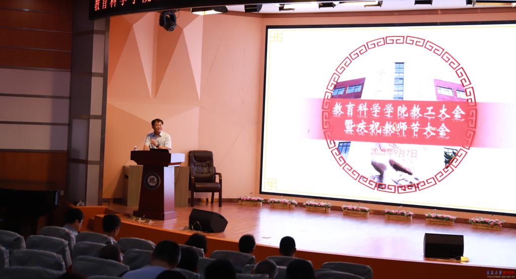 新闻网讯 9月7日下午,教育科学学院在学术报告厅召开2025秋季学期教工大会暨庆祝教师节大会,共同庆祝教师节并部署新学期工作。