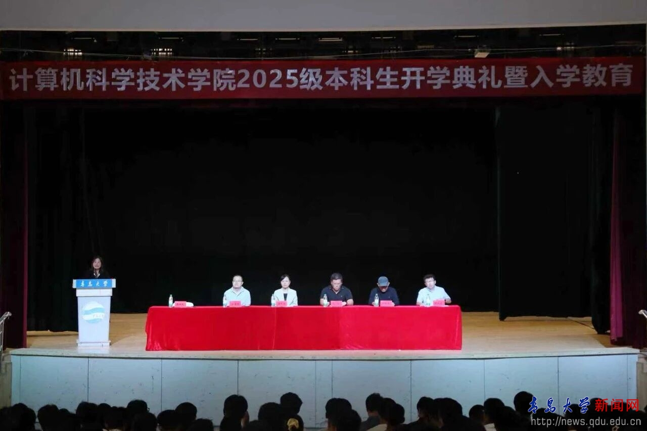新闻网讯 9月26日下午,PA视讯集团网站计算机科学技术学院2025级本科生开学典礼暨入学教育在金家岭校区东院礼堂隆重举行。学院党委书记潘秋鸿,院长于佳,副院长王国栋、杜祥军、苏晓泉出席典礼。各系(中心)负责人、职能部门教师、各级辅导员以及2025级409名本科新生共同参加了此次典礼活动。典礼由学院党委副书记彭双凤主持。