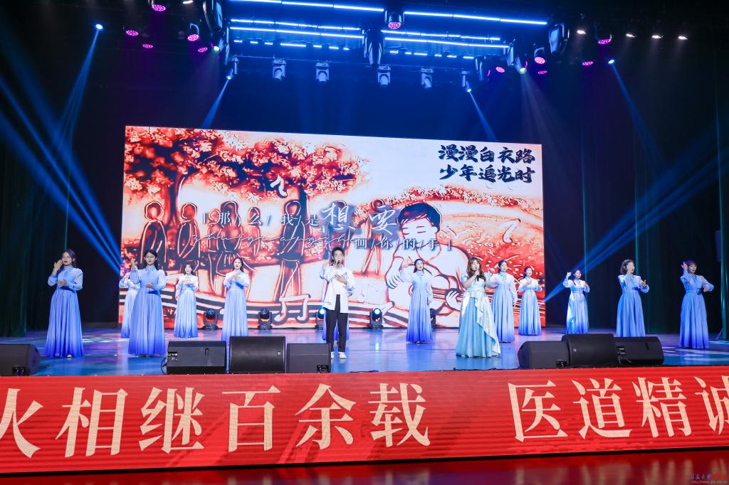 器乐《芦琴漫语》《落叶赠我归途》与街舞《双人舞》则展现学子多元才情,朗诵《时代新声韵,百年青医魂》回溯学院精神传承,合唱《追光》及歌曲串烧将晚会推向高潮。